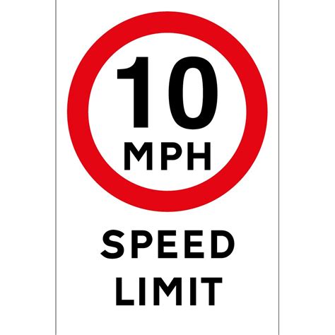 10 Mph Signs. Limit motorists to 10 mph on your site by displaying this speed limit sign. It features the 10 mph do not exceed.