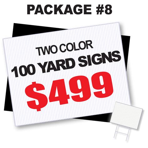 100 Yard Signs. Great for political campaigns, real estate listings, business advertisements, and. Special includes 1 color on 1 side.