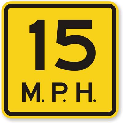 15 Mph Signs. You may have seen these aluminium. Includes the 15 miles per hour.