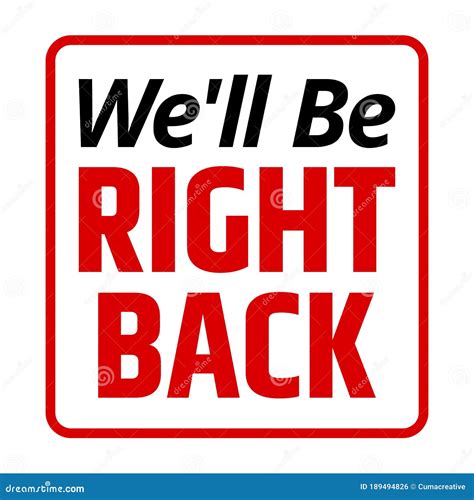 We'll Be Right Back Sign. Vector Illustration Stock Vector