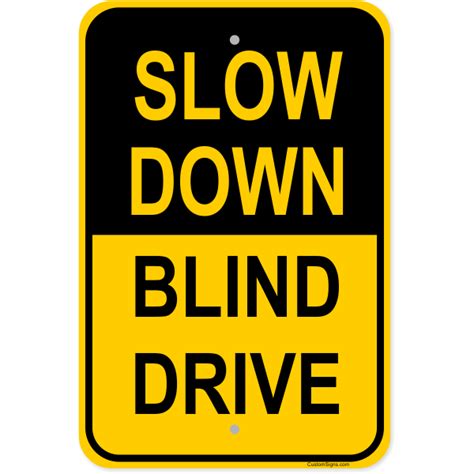 Slow Down Blind Drive Aluminum Sign 18" x 12" Custom Signs