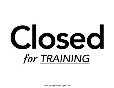 Web this printable “closed for training sign” can be used it to inform visitors or clients that your establishment will be closed during staff training. Web office closed for training sign description our sign templates are designed for 8.5 x 11 (letter size) paper. This design template will be printed in cmyk color model & rgb color model. Download this printable closed for training sign and use it to inform visitors or clients that your establishment will be closed during staff training. Web closed for training sign. Web closed for training sign closed for halloween sign closed for the weekend sign closed for maintenance sign closed for renovation sign closed for the season sign closed sign template closed for columbus day sign closed for martin luther king day sign closed for presidents day sign closed for veterans day sign closed sign. This could also mean that the establishment is temporarily closed due to unforeseen circumstances, such as inclement weather or other unexpected events. Touch device users, explore by touch or with. Get a new download link; This design template will be printed in cmyk color model & rgb color model.