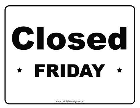 Closed Friday Sign. You have your traditions, your decorations, but do you have your holiday signage? Web this printable closed sign is the perfect sign to use whenever your establishment is closed for business after working hours or during holidays.