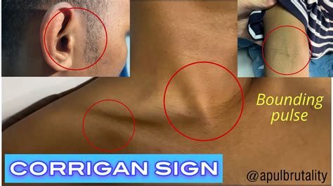 Corrigan's Sign. Watson's water hammer pulse, also known as corrigan's pulse or collapsing pulse, is the medical sign (seen in aortic regurgitation) which describes a pulse that is bounding and forceful, [1] rapidly increasing and subsequently collapsing, [2] as if it were the sound of a water hammer that was causing the pulse. Web corrigan’s pulse or sign.