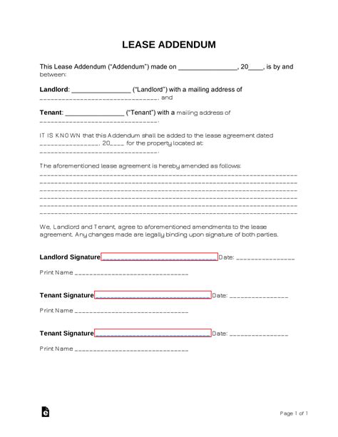 Web if a landlord asks a tenant who signed a 12 month lease to sign an addendum after they have already moved in that changes the terms of the lease to. Web late 17th century latin ( addere) what is an addendum the term “addendum” refers to any material that needs to be added to a document after the fact. How to write an addendum to a lease an addendum to a lease can help address unique issues. A lease addendum is an addition made to a lease between a landlord and their tenant. Web whether you write an addendum or choose instead to amend to your original lease agreement, all parties must sign each agreement for it to be legally. Authorizing tenants to do special things, like parking in a designated garage 3. Web posted on dec 2, 2010 i agree with kenny tan's response. Web one great reason to make sure that you sign a new lease agreement or get a lease addendum in place for a new tenant is to update the security deposit, monthly rent. Web do i have to sign a lease addendum if my landlord requires it? Web an addendum to the contract defines the definitions, sections, clauses, and terms that need modifying, and all parties must agree to and sign off on them.