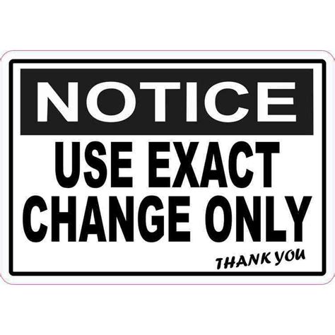 Web check out our exact change sign selection for the very best in unique or custom, handmade pieces from our tarot readings & divinations shops. This sticker is 5 inches wide by 3.5 inches tall when applied. Web this contract isn't in any form negotiated by the parties: It has the word, notice, in white letters on a rectangular, black background; At the best online prices at ebay! The terms are mostly implicit, and all they have to say is what the rate is. So, i was effectively charged nearly twice what i should have been. Web it was only after i inserted a $10 bill that i noticed the exact change only sign under the payment slot. It was only $4, but i felt like i had been scammed and i went to the main parking office to request my change. Web check out our exact change selection for the very best in unique or custom, handmade pieces from our shops.