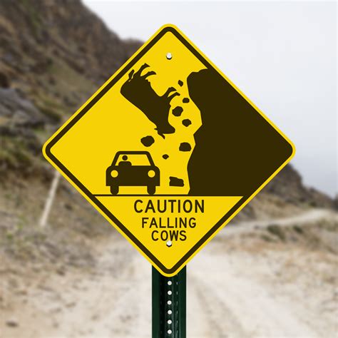 Falling Cow Sign. A fake yellow road sign marks the spot where a cow fell off a cliff and onto a passing car. • millions of unique designs by independent artists.