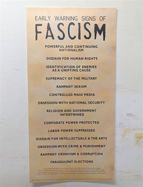 Fascism Warning Signs. Web the early warning signs of fascism are: These include national symbols of historical importance,.