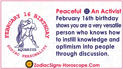 Web february 16 zodiac sign’s personality loves being part of gatherings and groups that help others. Web discover the personality traits and dates of every zodiac sign including aries, taurus, gemini, cancer, leo, virgo, libra, scorpio, sagittarius, capricorn, aquarius, and pisces. Throughout your life, you have noticed people seem to gravitate to your personality. Being an aquarius born on february 16th, your personality is characterized by innate charm and impulsiveness. This symbolizes the nurturing, progressive but also simple lives of these individuals and of a perpetual replenishment process of the whole earth. It influences people born between january 20 and february 18 when the sun is in aquarius, the eleventh zodiac sign. While your warmth and friendliness does play a role, you may be surprised to realize that many people are drawn to your mystery. February 16 is the sixteenth day of the second. How could anyone mistake you for doom and gloom? The lucky sabian symbol is “as a man thinketh so he becomes.” february 16 zodiac ruling house.