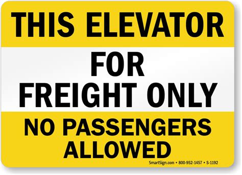 Durable sublimation printed freight elevator signs. Orders over $39.95 ship for free. • 100s of stock options including bilingual elevator signs, you can. Web freight elevators are defined by the asme a17.1 code as those elevators used primarily for carrying freight and on which only the operator and the persons necessary for unloading and loading the freight are permitted to ride. where provided, they are not required to meet the ada standards. This sign is available in 5 different sizes and manufactured in vinyl, plastic, and aluminum, making it ideal for all settings. Freight elevators are a crucial part of your business, so keep them well marked and in order. In case of emergency, maximum capacity, freight, out of order, and many more! Order your new signs direct. Web post freight elevator signs throughout your facility to notify personnel of particular requirements, such as weight capacity. Durable sublimation printed freight elevator signs. • signs are guaranteed to last for years.