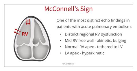 Mcconnell Sign Echo. It is defined as a regional pattern of right ventricular dysfunction, with akinesia of the mid free wall and hyper contractility of the apical wall. Flattening of the intraventricular septum or paradoxical septal motion.