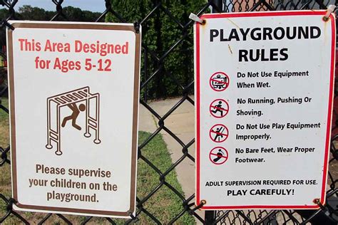 Keep our children safe with. Web here are some of the safety signs or labels that playgrounds should have: Great for school and public playgrounds whether they're indoors or outside Save up to 70% off with image packs Web playground safety signs/labels to have on your playground playground strangulation warning warns about the hazard of being strangled by loose clothing, drawstrings, necklaces, jump ropes, helmets, pet leashes, etc., and to remove these items from the child or the equipment. Some signs are for information, some are for warning, and some are for. This sign warns the users about the possible danger of being strangled. Web signs and labels on and around playground equipment provide safety information on playgrounds. Web street sign warning plaque no dog allowed in playground metal tin sign wall art decor safety warning signs for outdoor & indoor office sign 8 x 12 inch. Web signs/labels to have on your playground strangulation warning warns about the hazard of being strangled by loose clothing, drawstrings,.