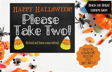 Happy Halloween Candy Sign Please Take Two Treats Etsy