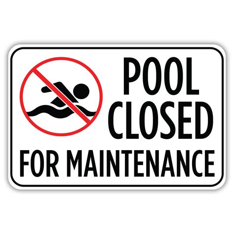 Pool Closed For Maintenance Sign. While our safety sign designs are based on standards published by ohsa and ansi, we make no guarantees that the signs are suitable for a particular use. 10 × 14″ 12 × 18″ 18 × 24″ material: