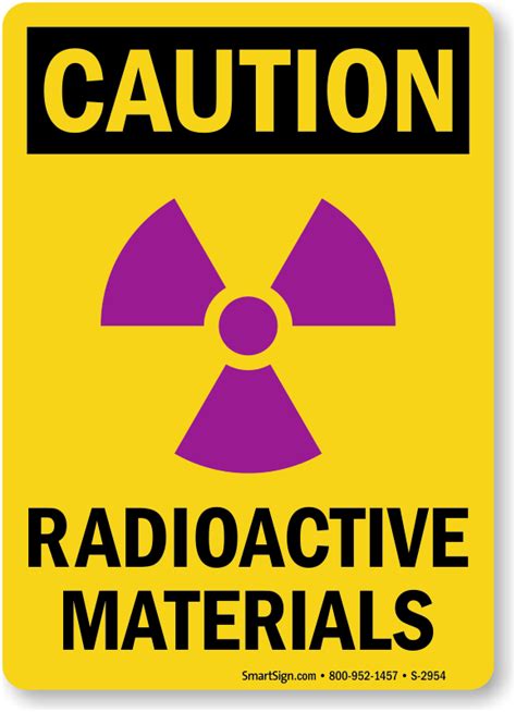 Radioactive Materials Sign. • quickly alert visitors and employees to the presence of radiation or radioactive materials in the area. Label drums, nuclear waste and storage areas with our radioactive material signs and stickers.
