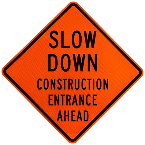 Slow Down Construction Entrance Ahead Sign with Right Arrow