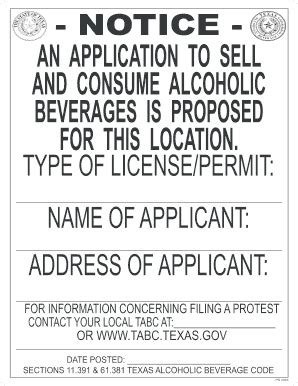 Web get tabc 60 day sign signed straight from your smartphone using these six tips: Sign it in a few clicks draw your. Tabc previously accepted and processed. For information concerning filing a protest. Web if you’re required to post it, your outdoor sign needs to be visible to the public for 60 days before tabc issues your license or permit. Web be sure to review who eligibility for anywhere sign and contact your local tabc office with questions. Don displaying this sign could. Web the texas alcoholic beverage commission will provide them free of charge. The application has to be submitted to your local tabc office. Edit your tabc 60 day notice sign online type text, add images, blackout confidential details, add comments, highlights and more.