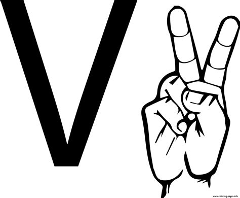 ASL Sign Language Letter V coloring page Free Printable Coloring Pages