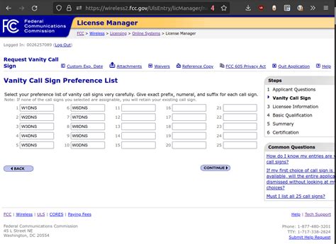 Vanity Call Sign Application. The first assignable call sign on your list will be assigned to your station. When so requesting for your primary or club station:
