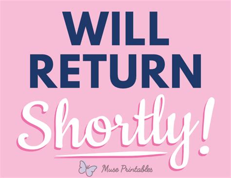Web home collections signs will return shortly sign description our sign templates are designed for 8.5 x 11 (letter size) paper. Web osha notice out of office will return shortly please sign or label. Web when you buy a signmission out of office will return shortly sign online from wayfair, we make it as easy as possible for you to find out when your product will be delivered. While our safety sign designs are. When you return to a place, you go back there after you have been away. Web prior to his injury, pokusevski averaged 8.8 points, 5.1 rebounds and 1.3 blocks per game while shooting 37.6% from beyond the arc. Web check out our will return shortly sign selection for the very best in unique or custom, handmade pieces from our signs shops. | meaning, pronunciation, translations and examples. Featuring a professional design, this sign will perfectly inform. Web out to lunch sign, will return shortly, wood sign, office sign, front door, door hanger, business, school, manager, indoor sign, 8x6 inches Web return shortly definition:
