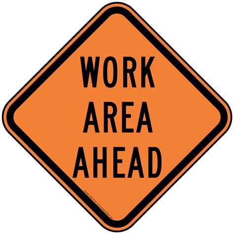 Work Area Ahead Signs. 18″ diamond 24″ diamond 30″ diamond 36″ diamond 48″ diamond material: These signs alert drivers to.