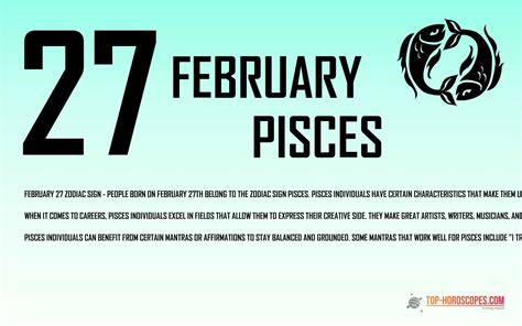 Fish empowers you to be intuitive. Web if you were born on february 27th, then you’re considered a pisces according to most people in the western world. Web people who are born on february 27, 2022, have the zodiac sign of pisces, and your ruling planet is neptune. Pisces tend to have an impetuous character, they are usually excellent partners, since they are quite. Web your zodiac sign is pisces. Pisces is a water sign. There are 12 zodiac signs, each with its own set of. Water signs are the most emotional and spiritual of the zodiac signs. Web as a pisces born on february 27th, you are well known for your imagination, intuition and selflessness. The moon in sagittarius aligns with the sun in leo at 5:22. As a visionary, you possess a youthful or.