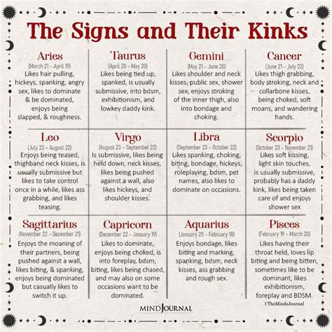 Zodiac Sign Kinks. Aries tend to express their passions physically, and they prefer sex. Dive into the depths of love.